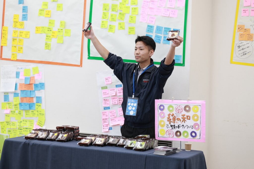 株式会社ただいま COFFEE STAND GENKANより、神定祐亮さんが出張サーブ!さらに、菓匠宮川が県北BCPに初登場し「焼きドーナツ・絆の和」をご提供くださいました。プレゼンの合間や休憩時間には、美味しいフードとドリンクで頭も心もリフレッシュ。緊張感に包まれたプレゼンの合間に、ほっとひと息つける優しい時間となりました。
