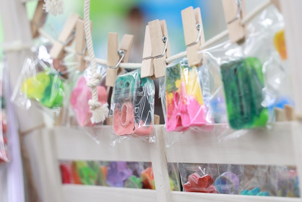 現在は市の助成金「高萩まちづくり支援金(10万円)」を主な運営資金としていますが、2026年度で終了予定のため、自主運営の仕組みづくりが急務となっています。そこで、県北BCPでは「サステナブルな事業にするための商品開発」をテーマに、寄付や助成金に頼らない資金循環の仕組みづくりに挑戦しています。その第一歩が、地域マルシェへの出店です。安全素材の「カスタムクレヨン」を使った体験型ワークショップを実施し、子どもたちが自分の色を選んで世界にひとつだけのクレヨンをつくります。楽しみながら表現力を育みます。この活動を通じて、地域との信頼関係を築き、地域食堂の想いも届けます。