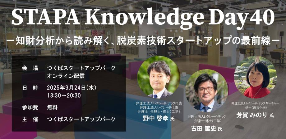 【event】STAPA Knowledge Day40 -知財分析から読み解く、脱炭素技術スタートアップの最前線-(2025.9.24)