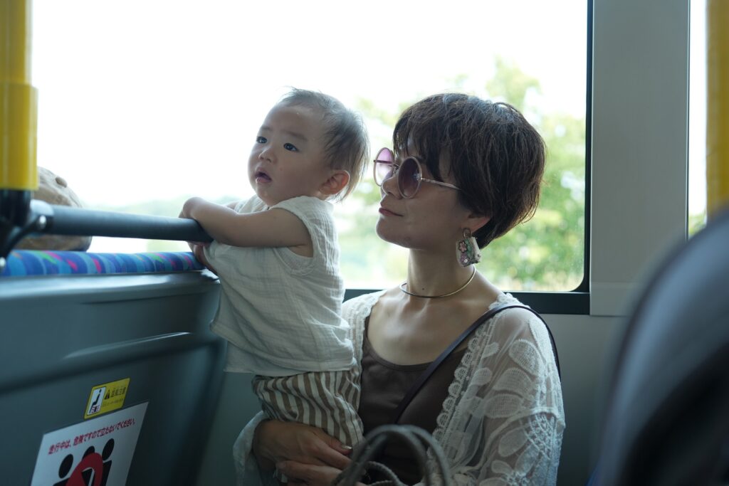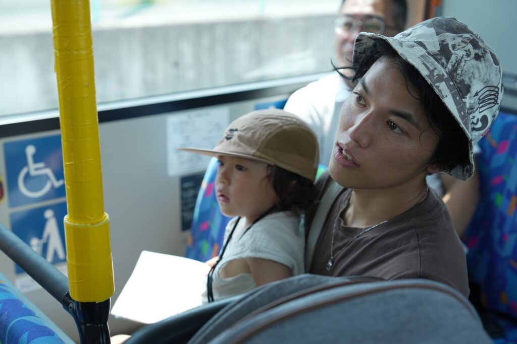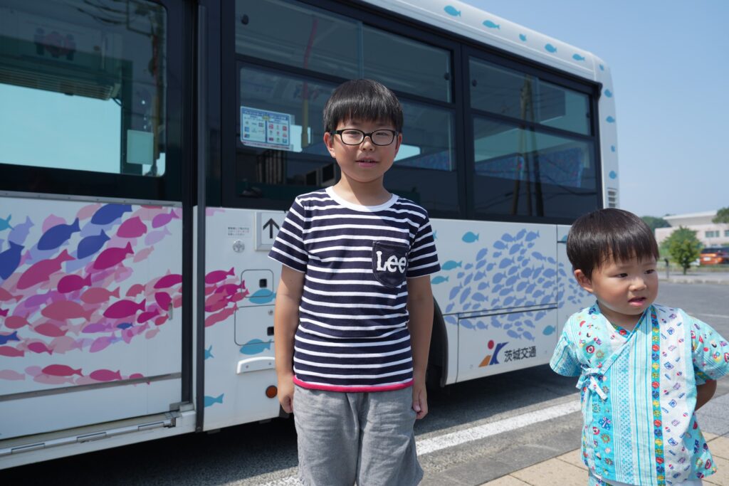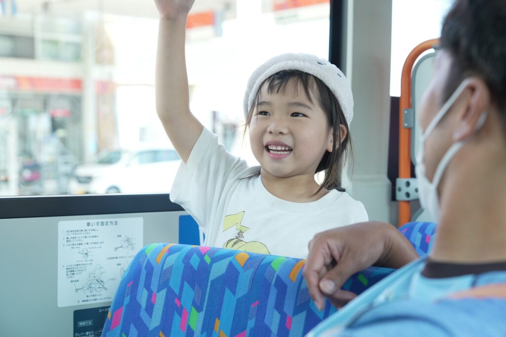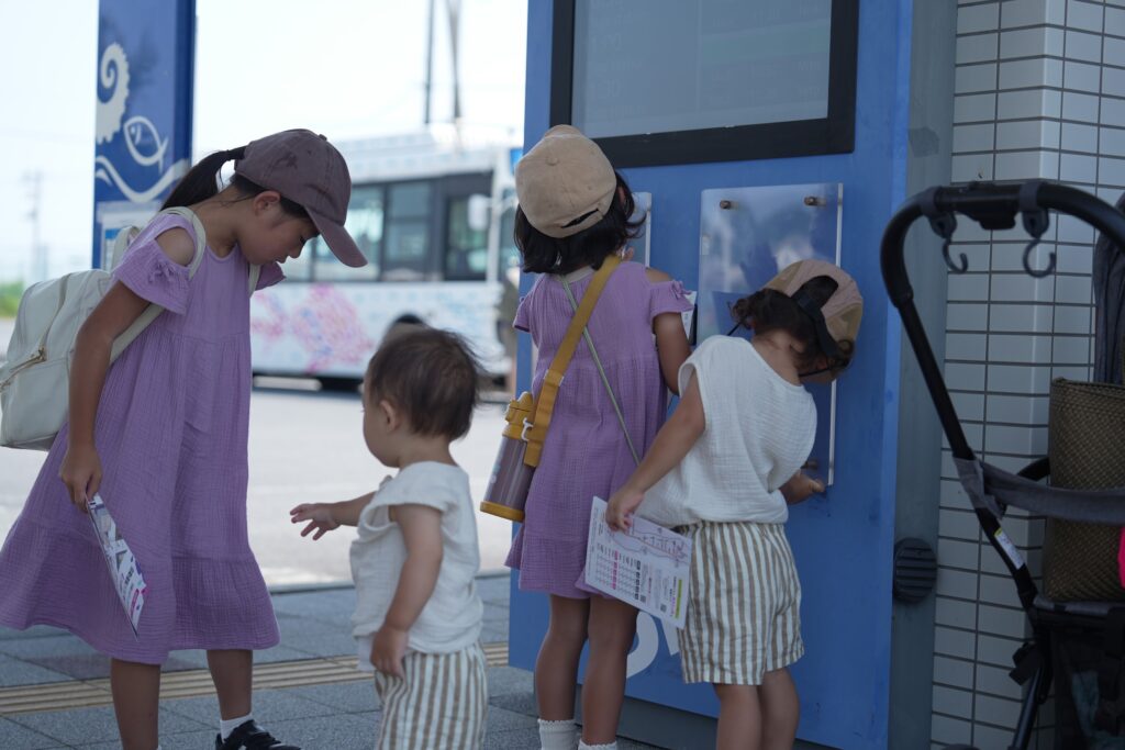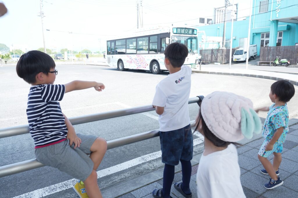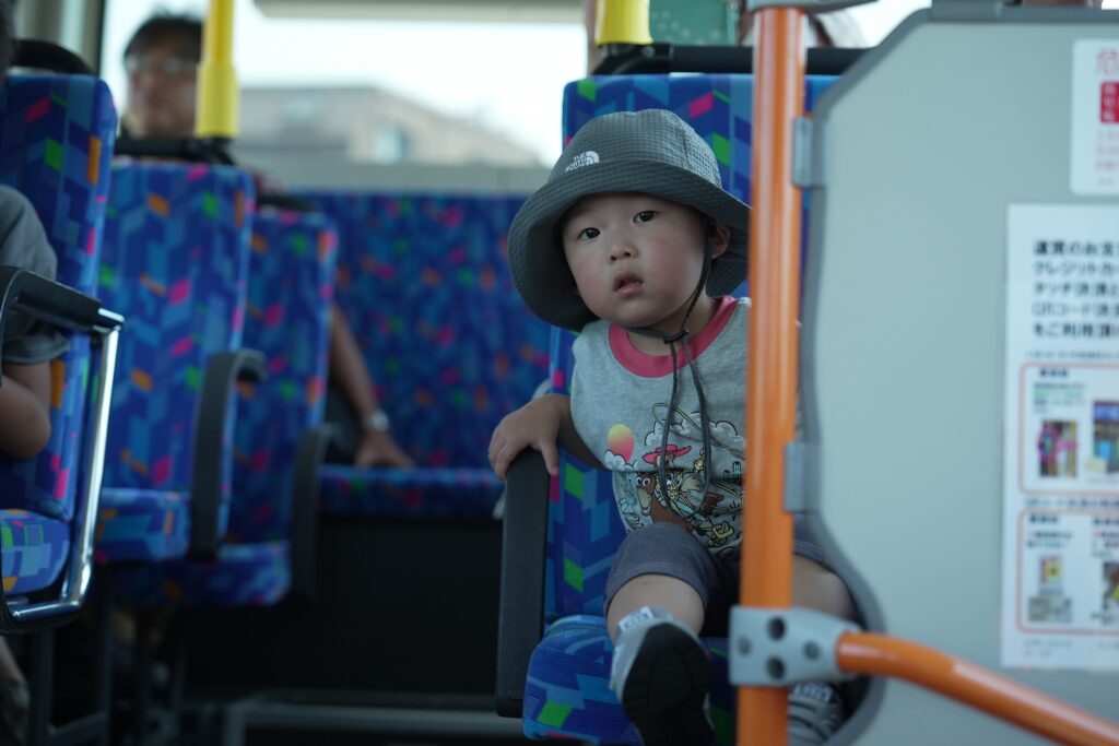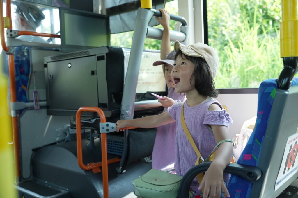 乗車を待っている間に停まっているバスを発見すると、こどもたちは大はしゃぎ!