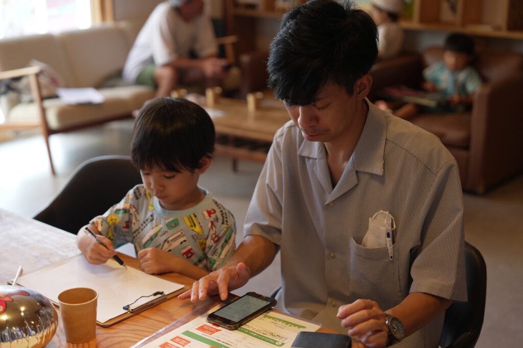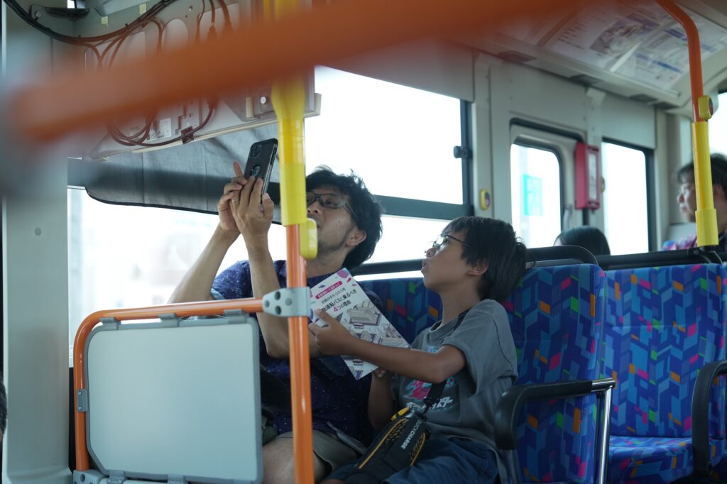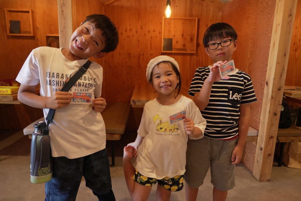 晴耕雨読では、乗車中に聞いた説明をクイズで楽しく復習したり、出発時に撮影した写真入りのこども免許証をお渡ししました。同じ便に参加したお子さん同士が仲良くなって遊ぶ姿も見られました。