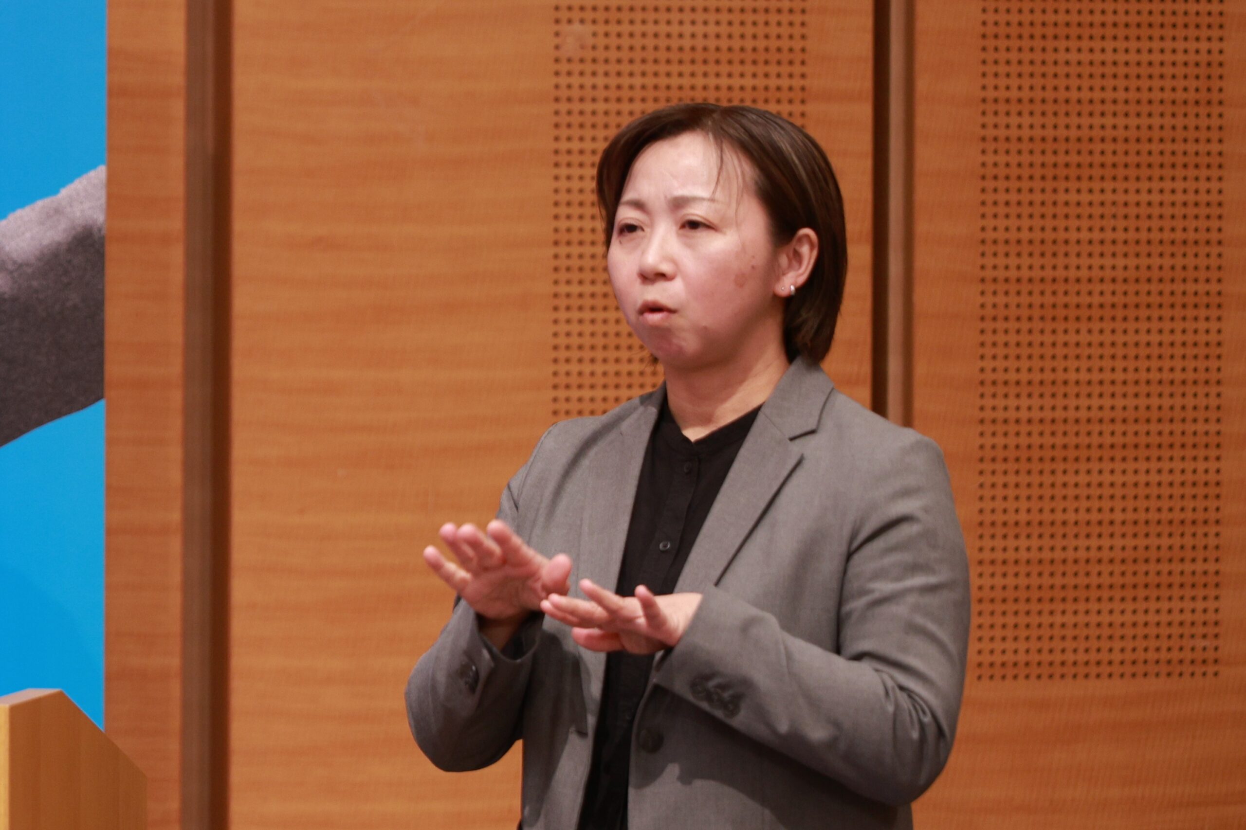 また、すべての方に楽しんでいただくため、手話通訳の方にサポートに入っていただくよう手配しており、ステージ企画や出展企業ピッチの通訳はもちろん、ブースを訪問する学生と企業のコミュニケーションもサポートしていただけます
