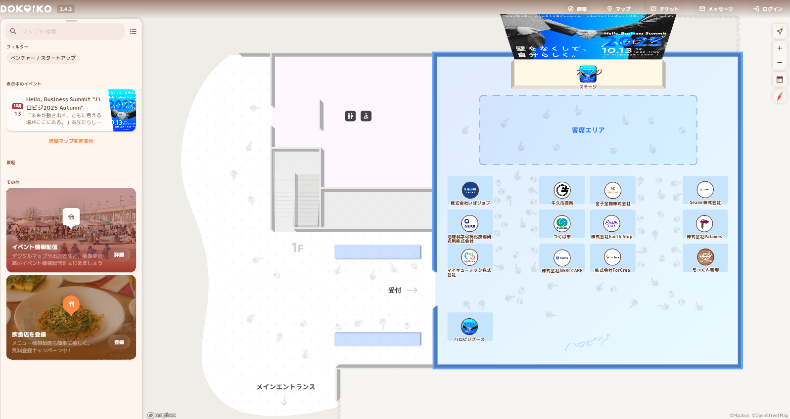 本イベントでは、筑波大発ベンチャー「株式会社Palames」とコラボレーションし、デジタルマップや出展詳細などイベントの魅力を、簡単かつ詳しく配信できるサービス「dokoiko」を導入しています!