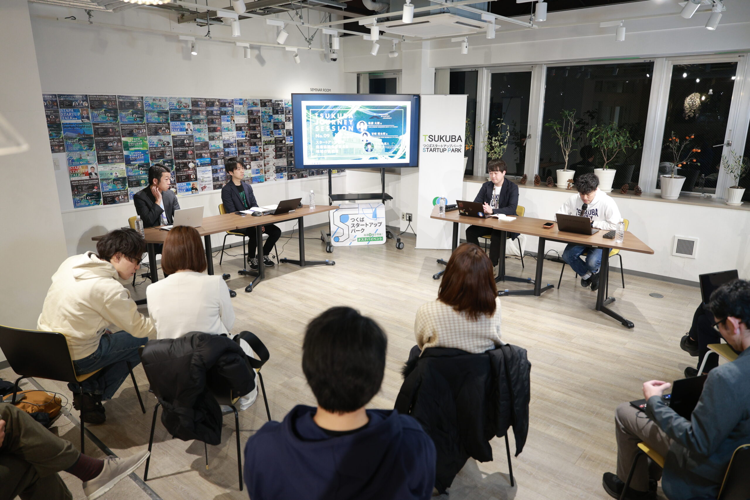 つくばスタートアップパークには、スタートアップ経営者をはじめ、学生や大学/研究機関の方、投資家や金融機関関係者などの多様な人々が集い、日々交流が行われています。また、つくばのスタートアップ推進拠点として、テクノロジー系スタートアップを核とした多様な起業ステージのスタートアップの支援を実施しています。この一環として弊社では、毎週水曜日に『スタパイベント』と題し、スタートアップに関するあらゆる方をお招きするイベントの企画・運営を行っています。