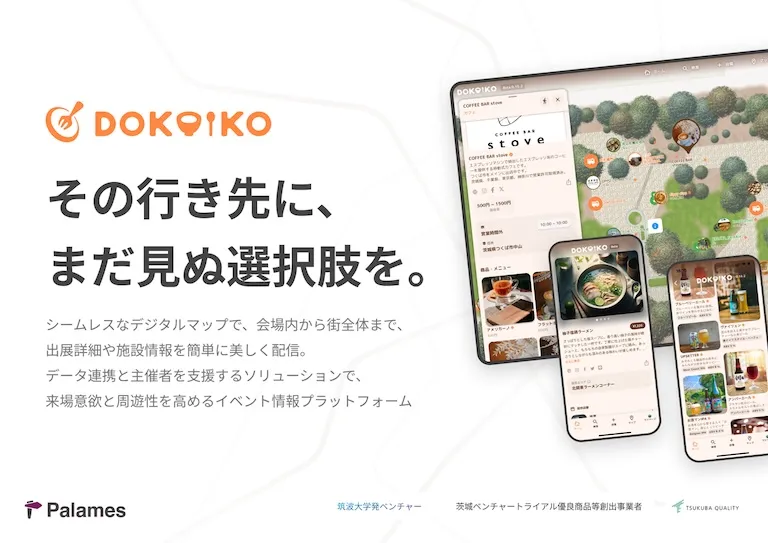 【サービスの特徴】 ・イベント出展詳細から街全体までの網羅的な情報配信を実現するImmersive Map ・主催者の業務効率化を実現しながら高解像度な情報配信を実現するデータ連携システム ・周辺のイベントや施設情報も配信でき、エリア全体の回遊性を向上 ・アプリとWebはもちろん、外部サイト内への埋め込みマップとしても活用可能