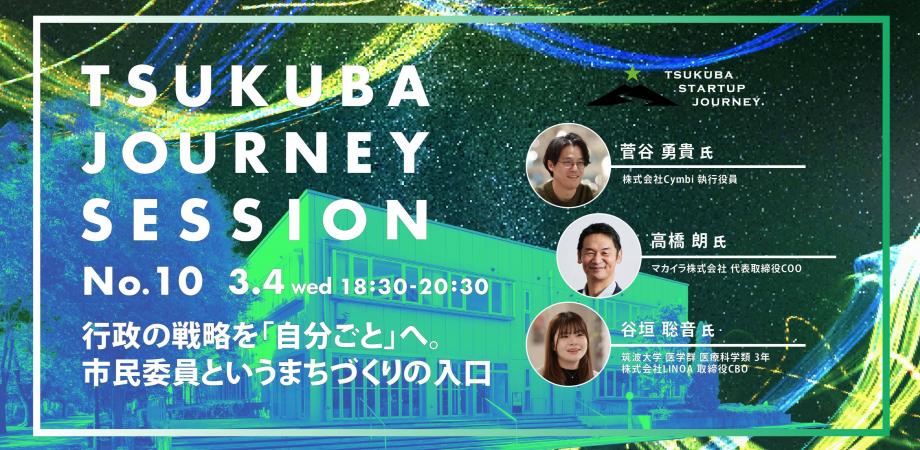 3/4(水)18:30からは『TSUKUBA JOURNEY SESSION No.10 -行政の戦略を「自分ごと」へ。市民委員というまちづくりの入口-』を開催!
