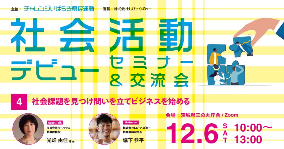 【event】社会活動デビューセミナー #4「社会課題を見つけ問いを立てビジネスを始める」& 交流会(2025.12.6)